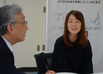 【植田】将来の話ですが、大学を卒業したら多くの人が就職活動か大学院進学かというように別れると思います。以前、地域を支える人を生み出したいという話を聞きましたが、人間科学部の学生に対してどういう学生に育ってほしいと思っておられますか?